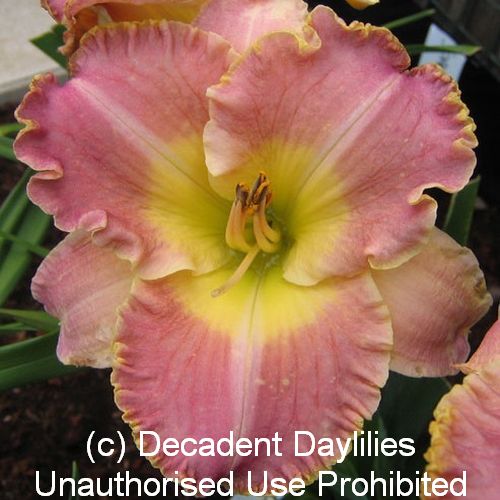Daylily Idas Magic – A peachy amber orchid coloured flower with a very ruffled gold edge. Stout Silver Medal winner 2001.
